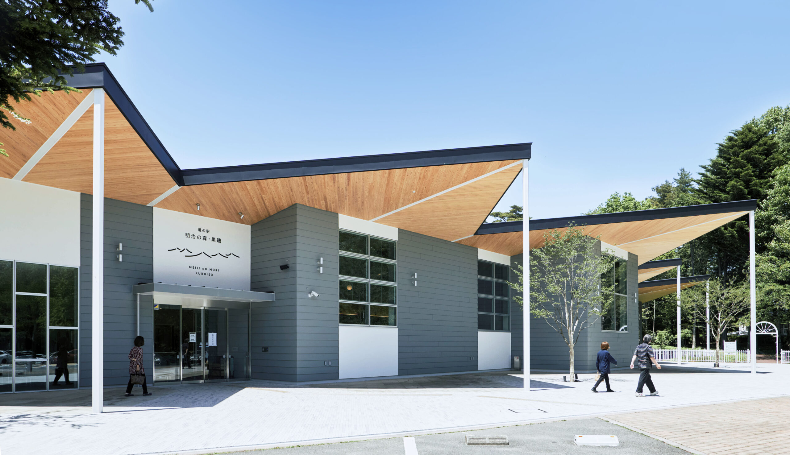 那須塩原の「食」「農」「観光」が集う場として、地域のシンボル的な拠点となるよう、那須五峰の山並みをモチーフとした大屋根を設けた。山々に抱擁された那須野が原の様々な魅力が大屋根の下に集い、地域の新たな発信拠点となる。皆々を招き入れるように、大きく開かれた庇は白い柱によって支えられ、屋外スペースの滞留を生むと共に、内部へと影をつくり夏の日差しから農産物を守る