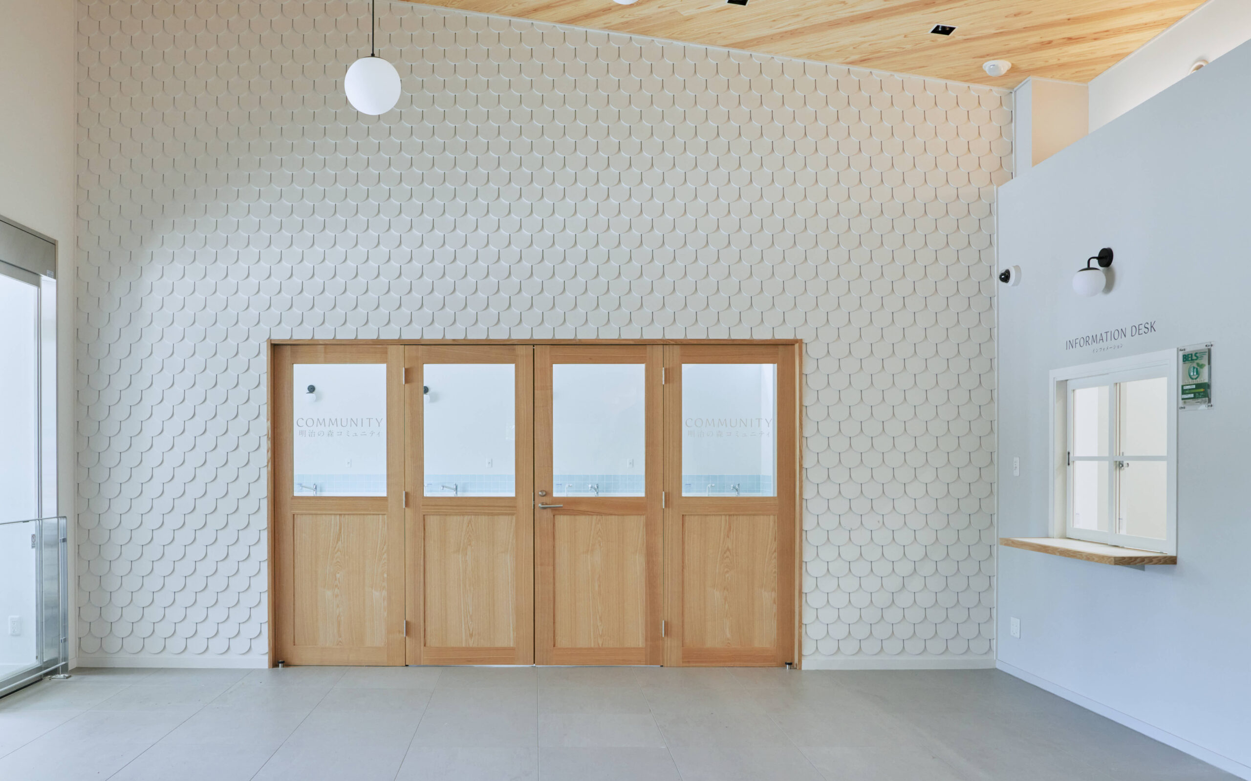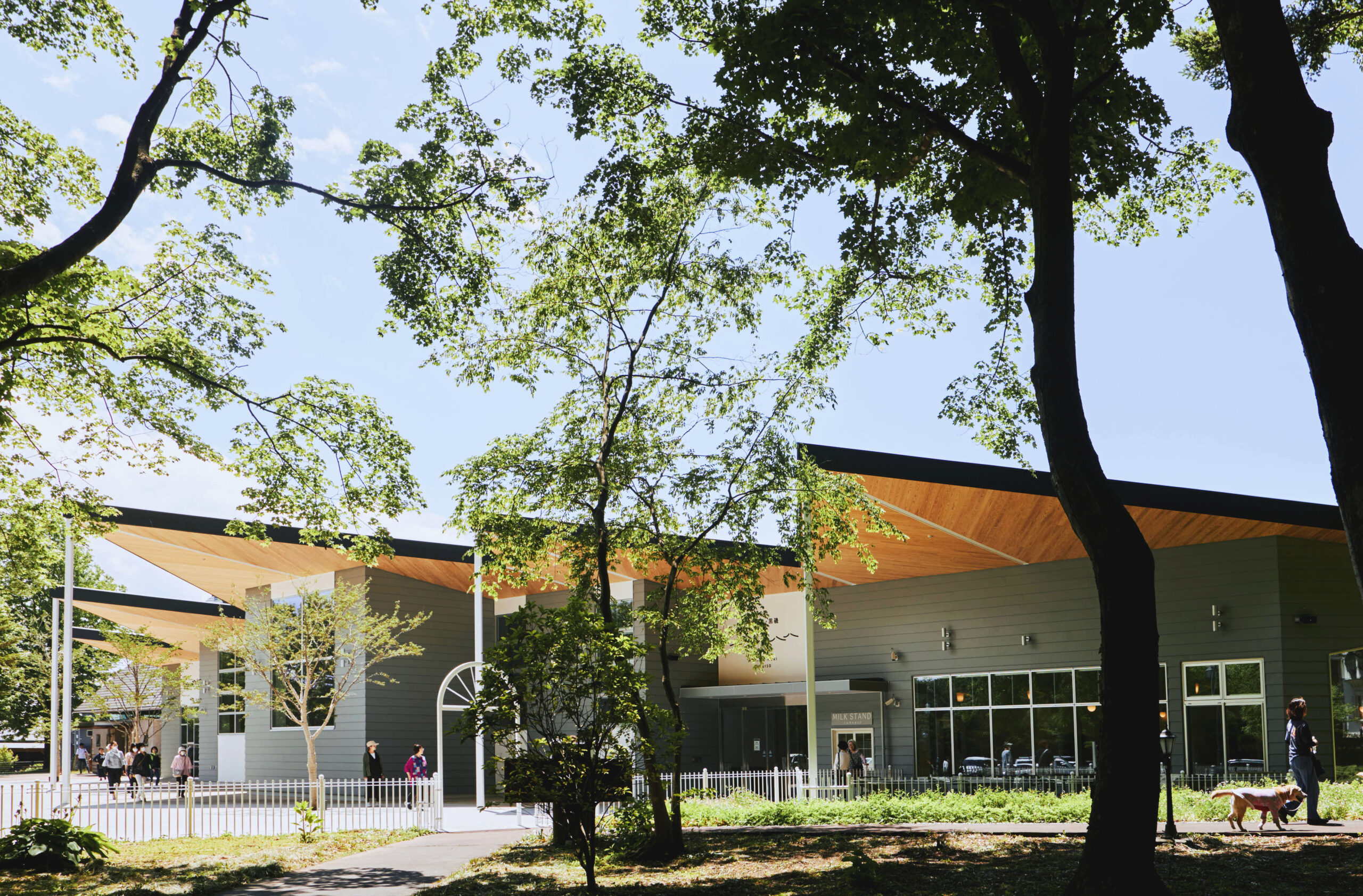 施設内外には隣接する旧青木家那須別邸の色彩や意匠をちりばめた。地域の皆に慣れ親しんだ別邸は今もなお、明治の魅力的な香りをこの地に伝える。困難な開拓の歴史を知る別邸を見つめ、140年の先、緑豊かな生産地となったこの地を心に刻む。