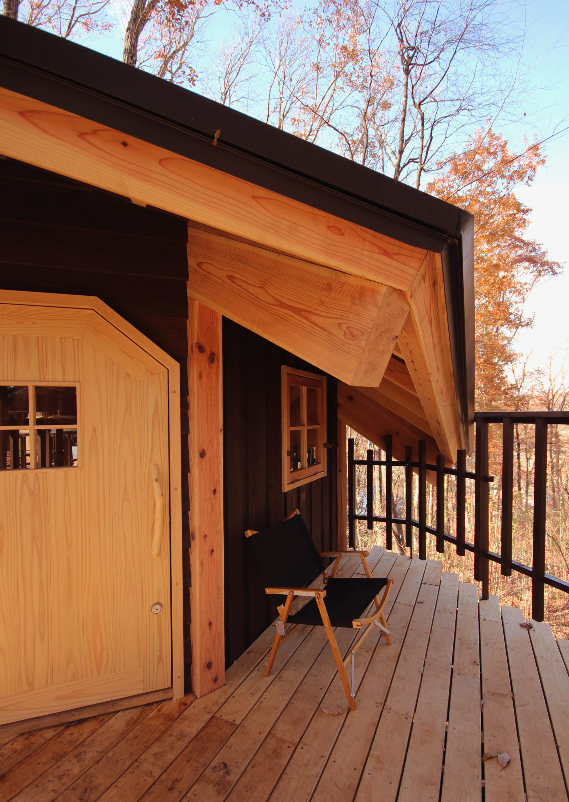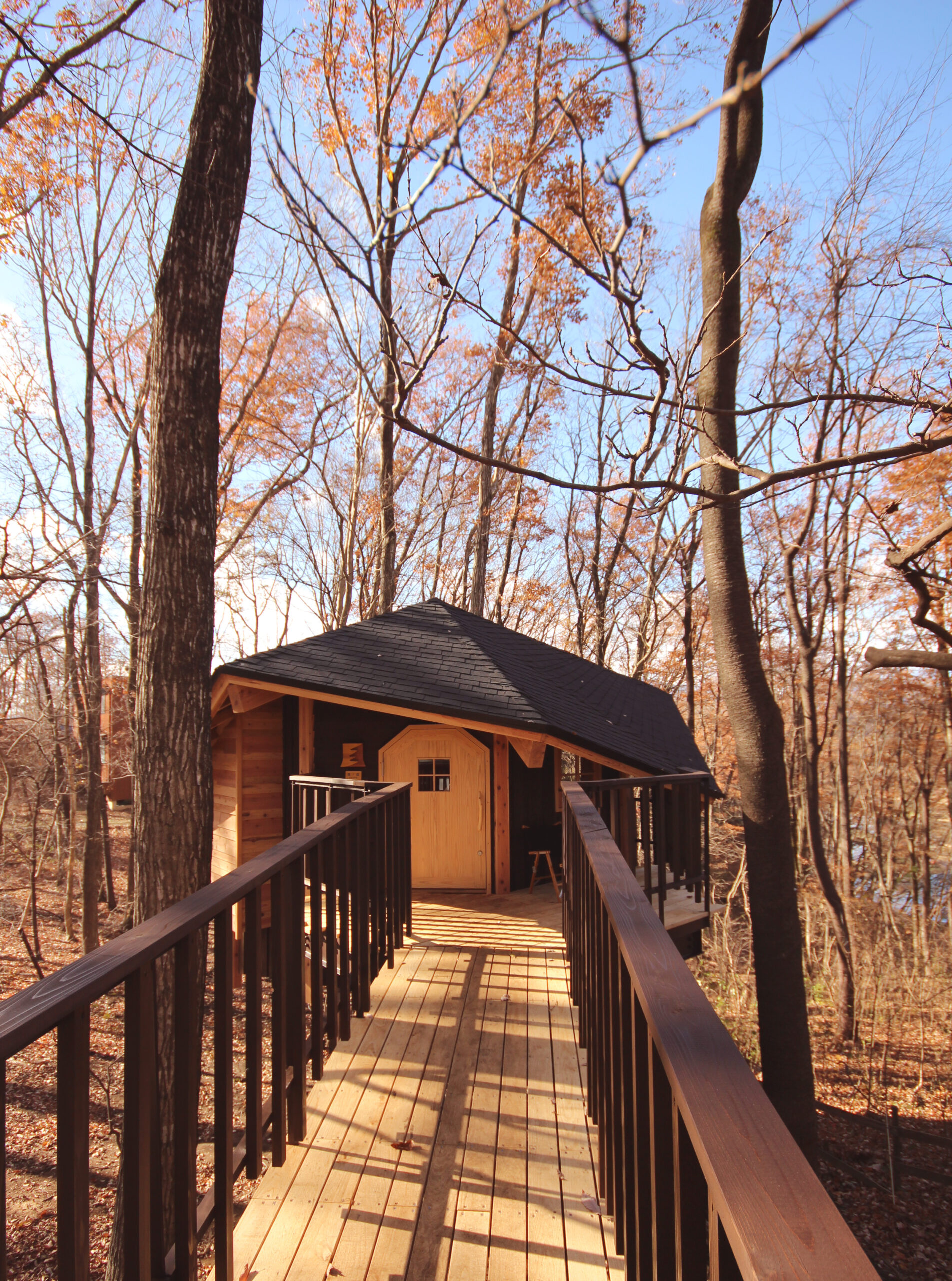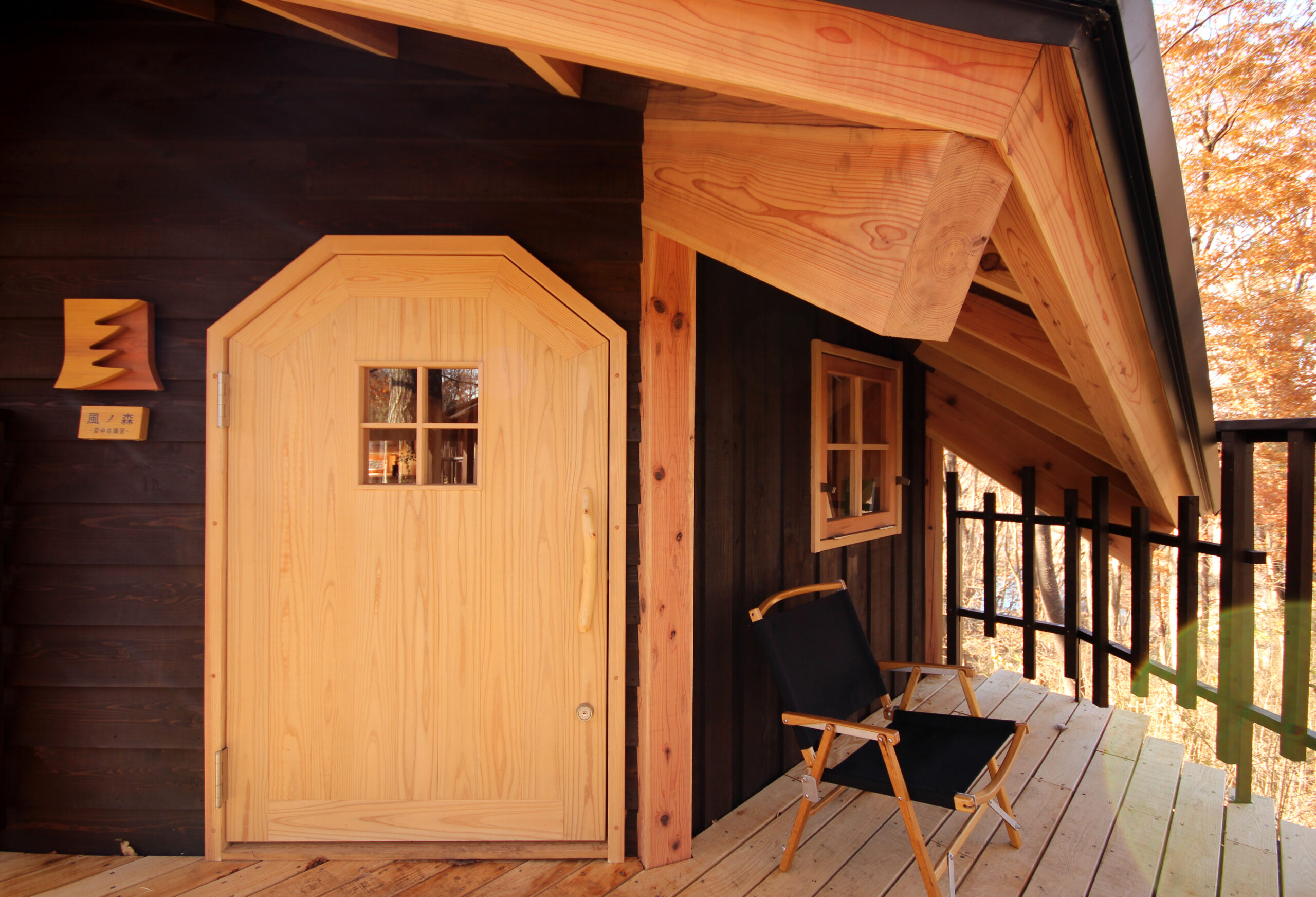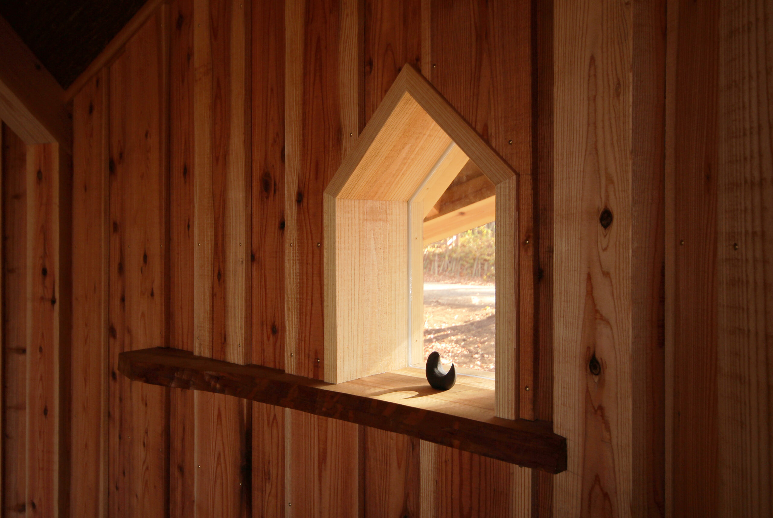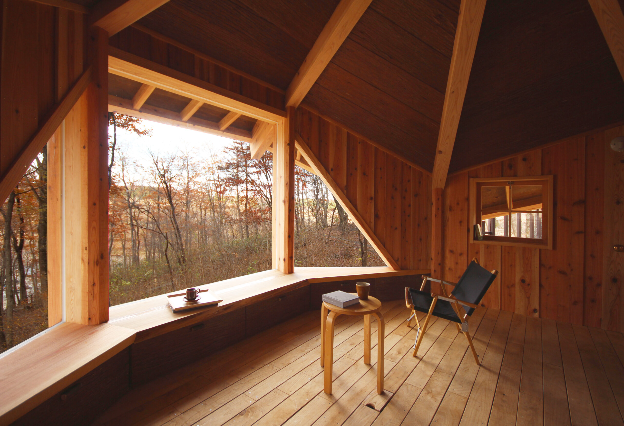 躙口のように高さをおさえた入口を抜け、空へ、森へとつながる。
